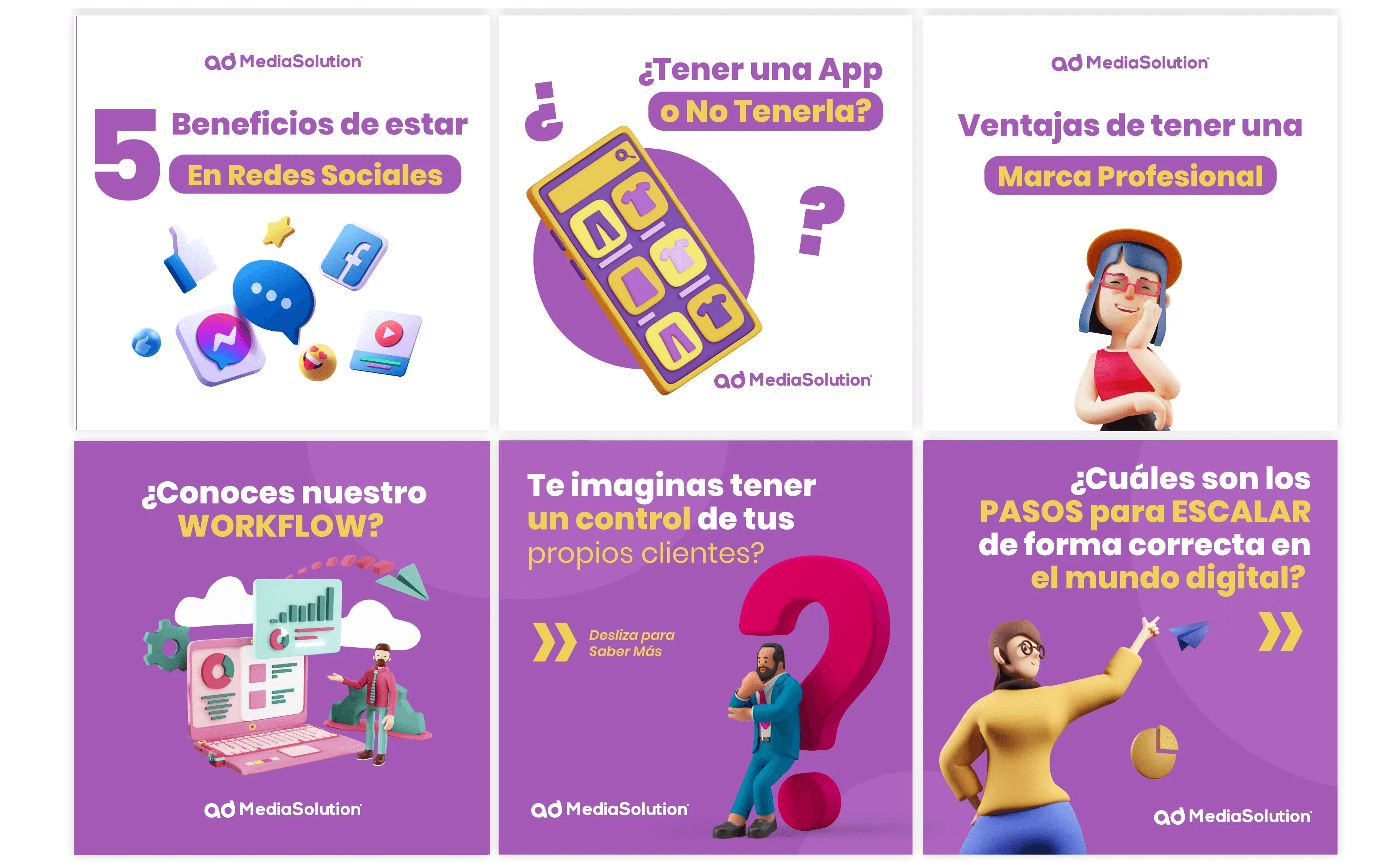 As part of the AD Media Solution digital marketing agency, they decided to refresh its social media presence with a rebranding initiative focused on modern, engaging content. The goal was to differentiate the agency in a saturated market by moving beyond traditional flat graphics and introducing 3D illustration and character design into its Instagram posts.